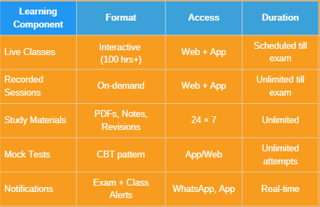 1. Students can attend classes from anywhere, access Animated Concept Videos, take Mock Tests, and revise through Topic-Wise Notes all in one place. With 24 × 7 access, learners prepare at their own pace while staying fully connected to the curriculum through continuous updates and notifications.